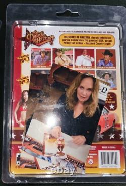 Package has been opened for Catherine's autograph. Item is pre-owned but signed back in 2022. AI: This action figure is from Figures Toy Company features the beloved character Daisy Duke from the hit TV show The Dukes of Hazzard. Fans of the series will appreciate the attention to detail in this original, licensed reproduction.