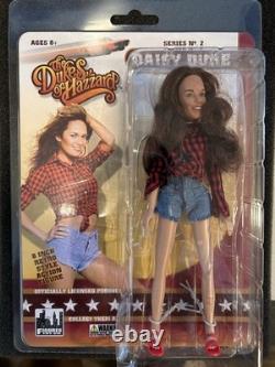 The Dukes of Hazard Action Figure Series 2: Daisy Duke 8 inch Figure is a collectible toy made of ABS plastic, featuring the iconic character from the TV show The Dukes of Hazzard. This Series 2 action figure stands 8 inches tall, showcasing the multicolored design of Daisy Duke as portrayed by Catherine Bach. Manufactured in 2014 by Figures Toy Company, this item appeals to fans of the franchise looking to add a piece of nostalgia to their collection. With its original design and licensed reproduction, this toy is a must-have for any fan of the vintage TV series.