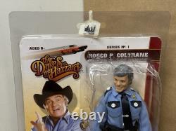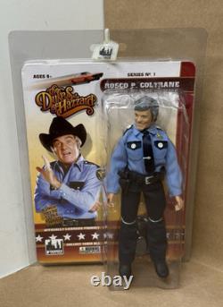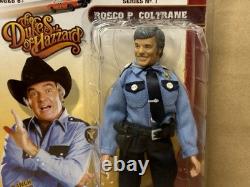 The Dukes of Hazard Action Figures Series 1: Rosco P. Coltrane 8" is a collectible action figure of the iconic character from the popular TV show "The Dukes of Hazzard. This 8-inch figure features Rosco P. Coltrane in multicolor ABS plastic material, complete with his signature hat.