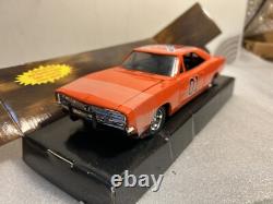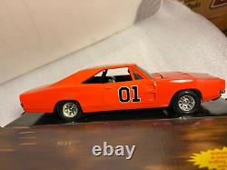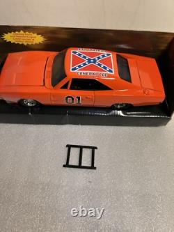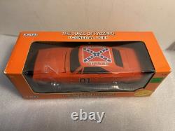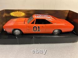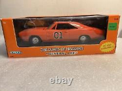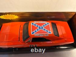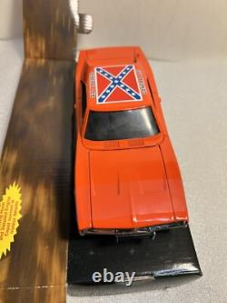 DUKES OF HAZZARD GENERAL LEE DODGE CHARGER 1/25 SCALE DIE CAST REPLICA. New in original display window box. Car has never been removed from the box until today for these photos. Hood plastic strap still sealed, and car is still screwed to base.