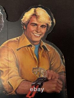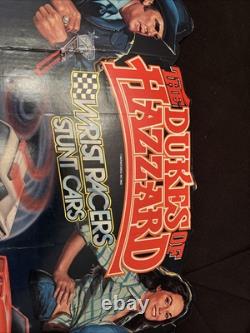 12" x 19.75" cardbaord header card for store display. Display features Daisy, Luke and Bo with Sheriff Rosco Coltrane launching their wrist racer vehicles at each other. Some edge wear and a few surface creases.