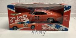 The Ertl 1:18 Dukes of Hazzard General Lee Diecast Vehicle (Model 32485) is a highly detailed and collectible toy car perfect for fans of the Dukes of Hazzard series. This special edition limited release features a diecast orange Dodge General Lee car in 1:18 scale, complete with a stand and unopened box. Autographed by Bo and Luke, the General Lee is a must-have for collectors and enthusiasts of ERTL American Muscle cars. Suitable for ages 8 and up, this iconic vehicle from 1969 is sure to be a standout addition to any diecast vehicle collection.
