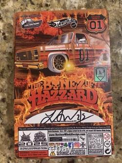 Rare fully custom Dukes of Hazzard Hotwheels die cast PAIR of two up for sale. These were produced from the amazingly talented Lee Allen of Nuclear Mindz Design and released at the 2025 Diecast Super Convention in Las Vegas. Vehicle is a Hotwheels Silverado truck and includes the regular series and Chase version. These are both numbered matching #5 of only 15 produced. Custom car, card artwork, Lees signature on back, and custom art attached to the plastic protector packs.