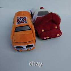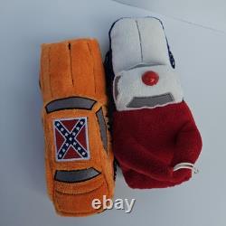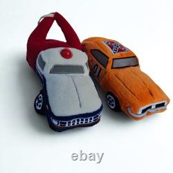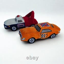 Cooter's Garage Tow Truck - Red, blue, White plush tow truck with garage logo on side. Each car measures approximately 9 inches in length and is soft, stuffed Plushies, detailed, and perfect for display or a nostalgic gift. These plush toys are hard to find and are considered rare memorabilia for fans of the classic TV series. Whether you're a collector or just a fan of Hazzard County, this duo is a must-have for your collection.