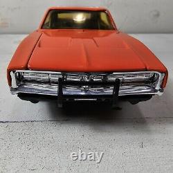 The vintage 1981 ERTL "Tin General" General Lee 1969 Charger is a rare collectible diecast toy vehicle from the Dukes of Hazzard series. This 1:16 scale model of a Dodge Charger in orange color is made of tin and was manufactured in 1981.