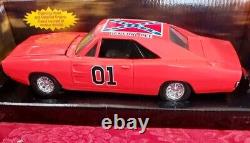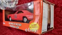 The vintage Ertl "The Dukes of Hazzard" General Lee 1969 Dodge Charger is a cast metal car toy featuring the iconic vehicle from the popular TV series. Made by Ertl, this collectible toy represents the Dodge Charger driven by the characters in the show, perfect for fans of the "Dukes of Hazzard" and vintage diecast cars.